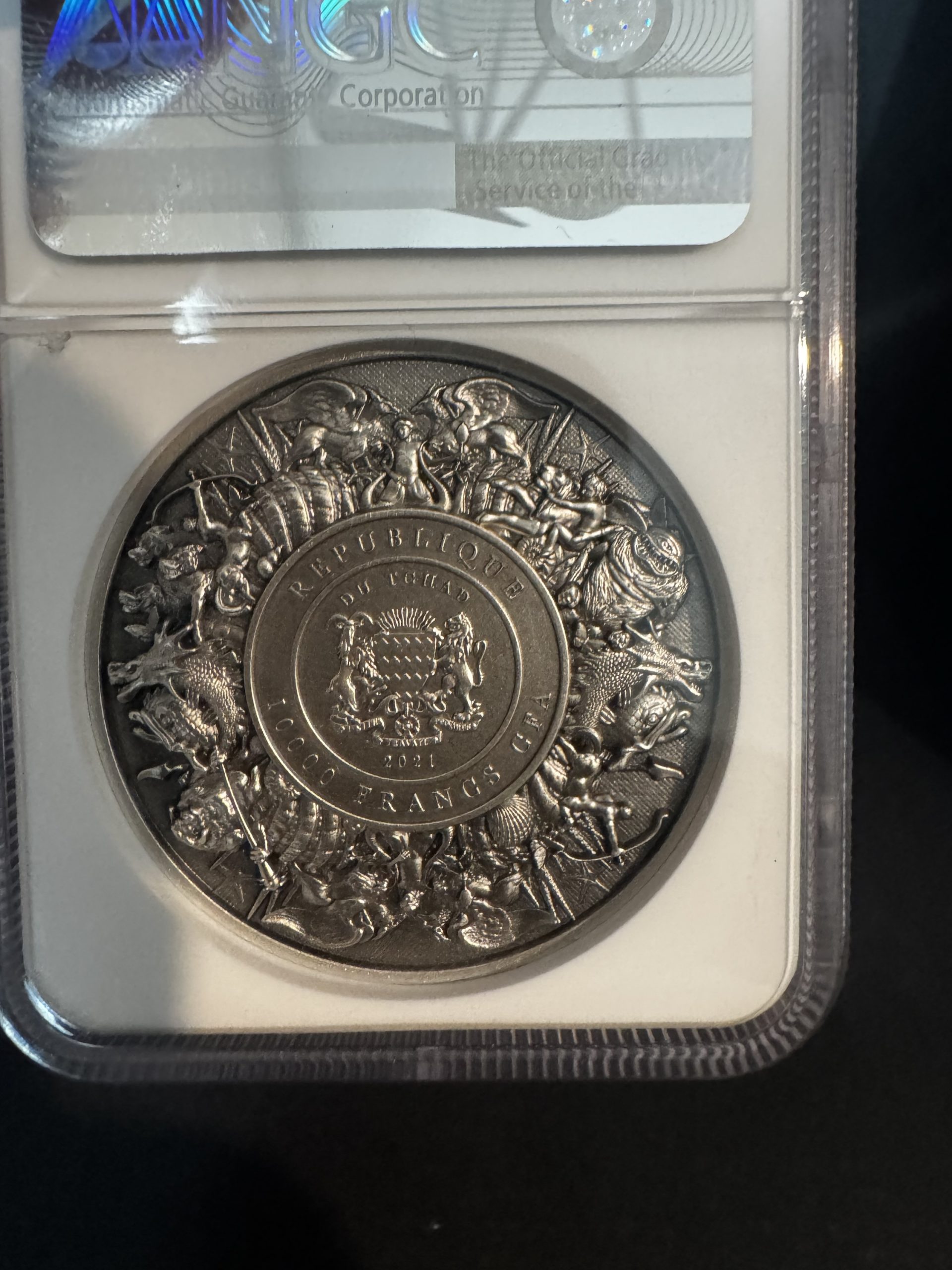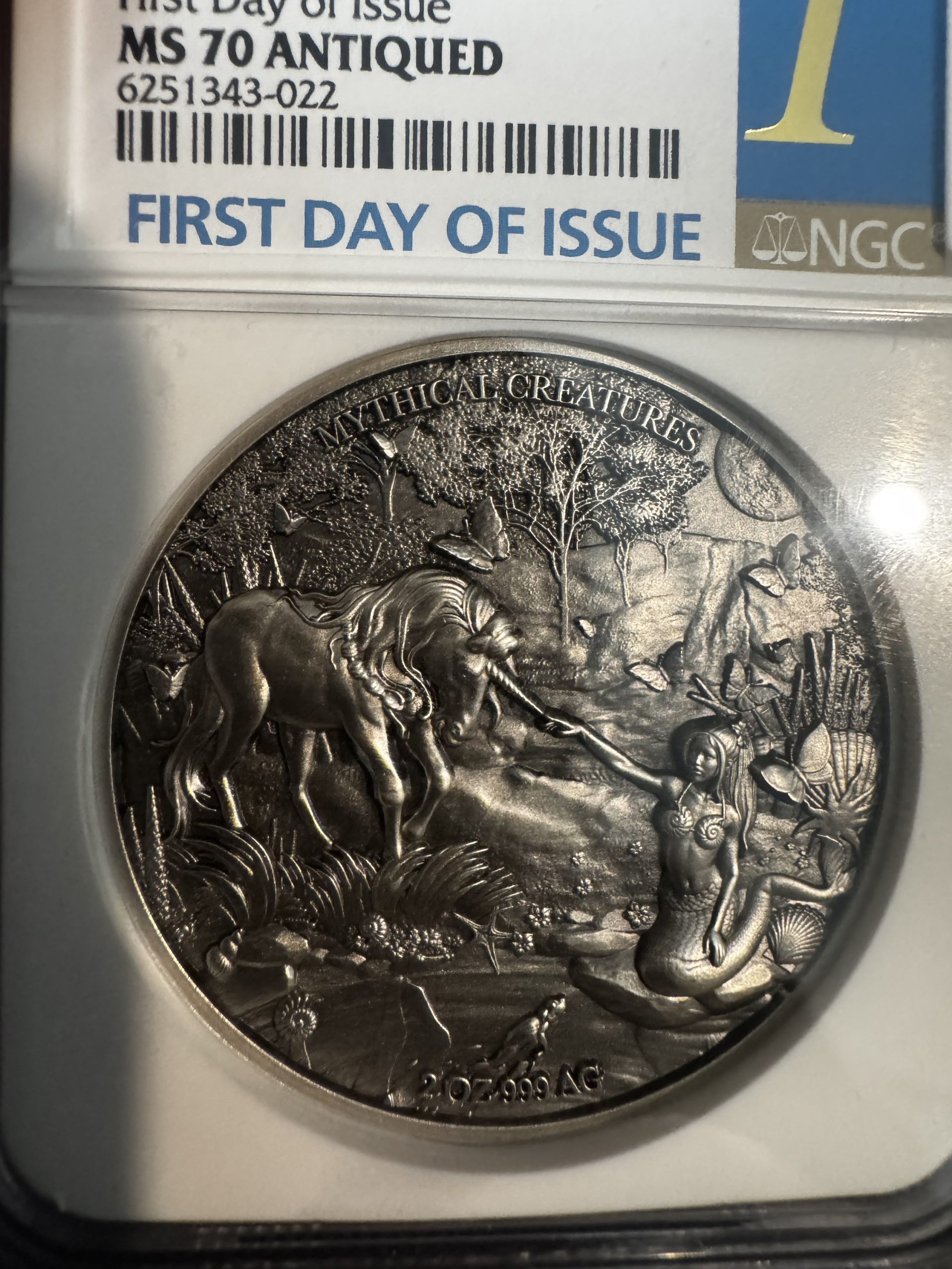Mythical Creatures 2021 Chad S10KF Mermaid & Unicorn-High Relief First Day of Issue MS 70 ANTIQUED