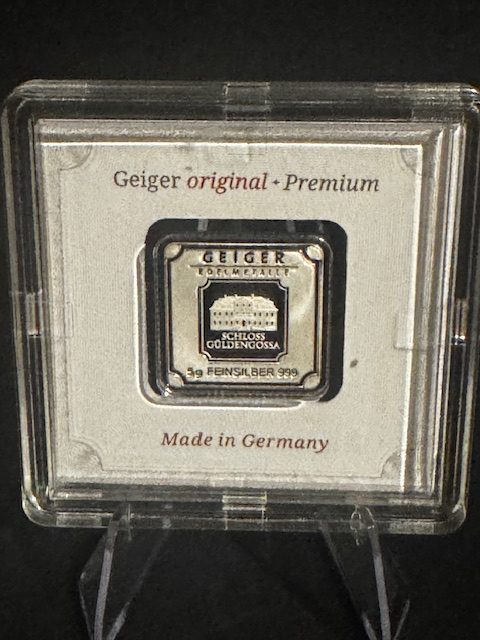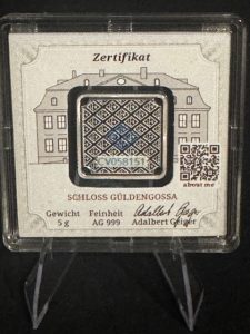 5 GRAM GERMAN GIEGER .999 SILVER ZERTIFIKAT SCHLOSS GOLDENGOSSA